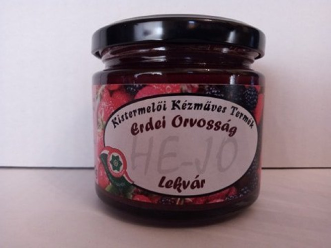 A málna, eper, feketeribizli, piros ribizli, szeder, bodzabogyó, kökény és a feketeberkenye  beltartalmi értékét hordozza magával ez a különleges kistermelői kézműves lekvár.